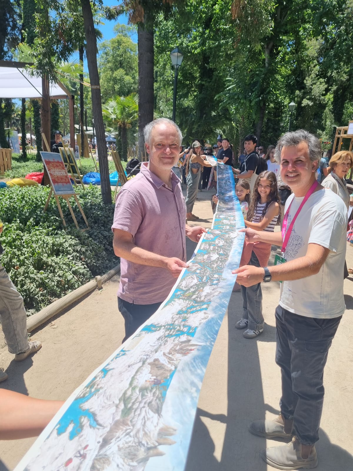 El libro largo de los Andes de Chile, por Paulo Cox (co-fundador de Andeshandbook) y Sebastián Ilabaca (ilustrador) es una obra única en la edición nacional: un leporello de 12 metros de extensión que invita a desplegar, observar y recorrer visualmente la gran columna vertebral de nuestro territorio. Este libro combina ilustración, historia, geografía, biodiversidad y memoria para poner en valor la cordillera que define nuestra identidad.