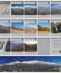- 12 fichas de montaña y trekking, que incluyen material fotográfico, datos básicos de la ruta y link QR a descripción completa de la ruta en Andeshandbook.org